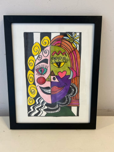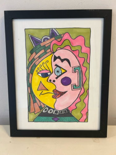 Framed Colorful Stylized Portrait Print II by S.N. Johnson, signed