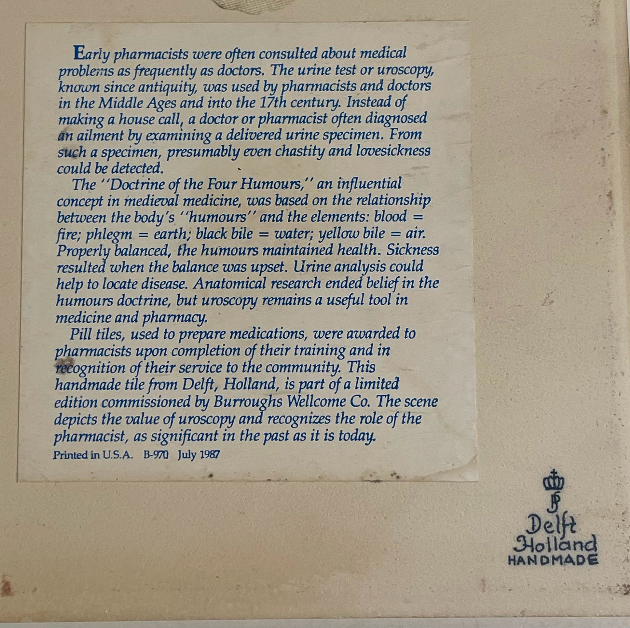 Delft Blue Holland,"Women Pharmacists" Tile