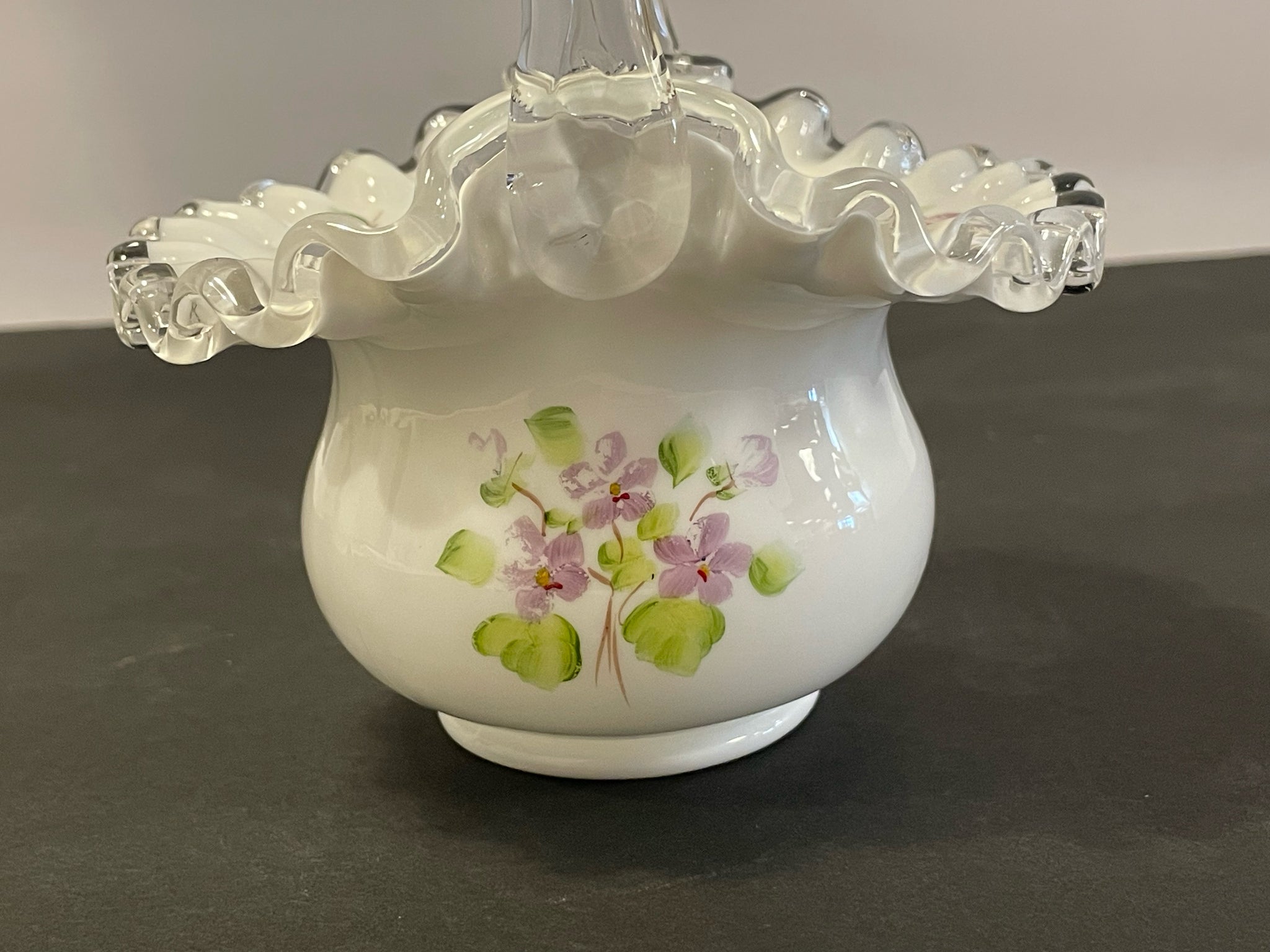 "Violets in the Snow" Silvercrest Basket from Fenton