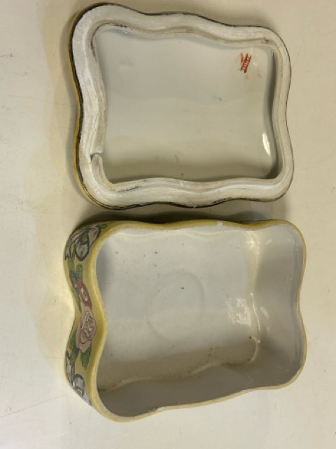 Yellow Floral Ceramic Decorative Box - AS IS: one slight crack