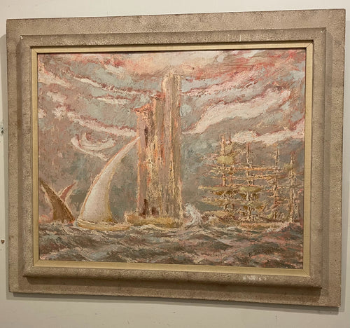 Textured Original Painting "Ships & Citidal" by Patricia Zurini, signed