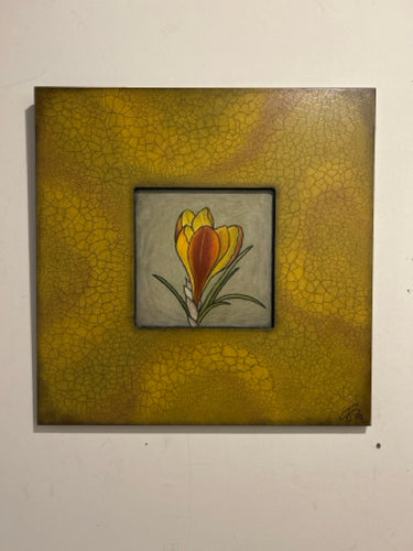 Floral Art Print on Wood Panel by Chip DuPont, signed - Yellow