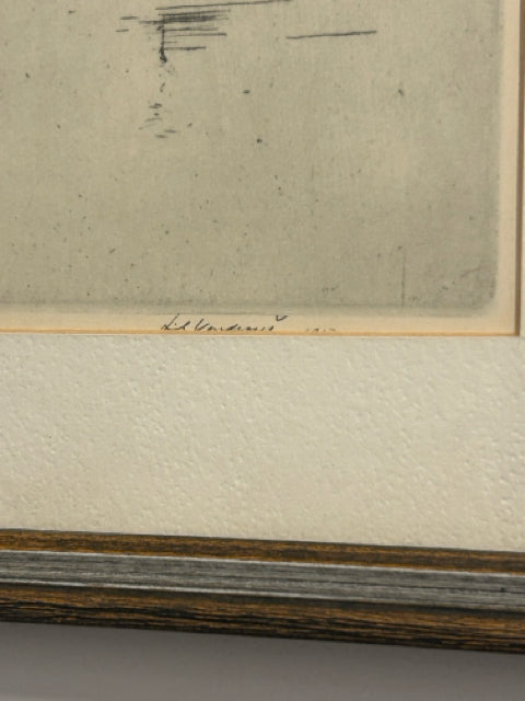 Framed Etching of Charles Bridge  Prague Czech Republic, signed