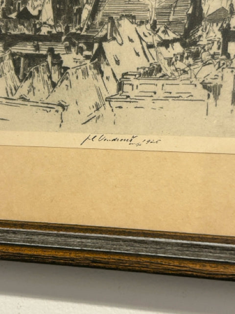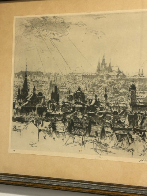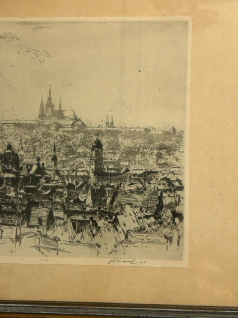 • Load image into Gallery viewer, Framed Etching View of Prague Czech Republic, signed