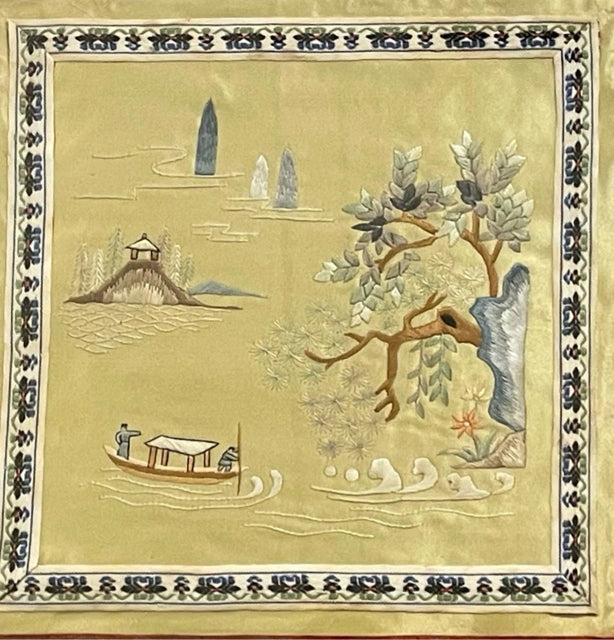 Framed Silk Embroidery of Chinese Water Scene