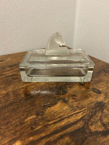 Vintage Glass Cigarette Box with Frosted Horse Head Finial from A.H. Heisey & Co.