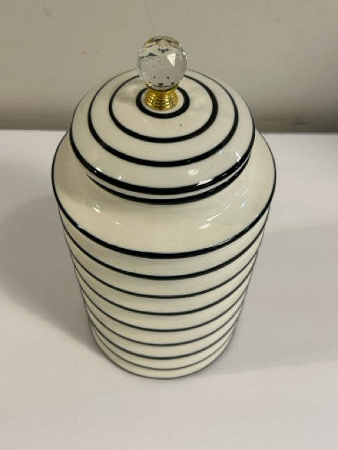 Tall Ceramic Striped Canister with Faceted Glass Finial