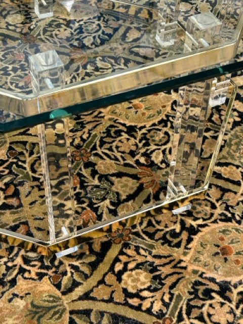 1970's Vintage Lucite & Glass Top Coffee Table with Gold Accents Attributed to Charles Hollis Jones