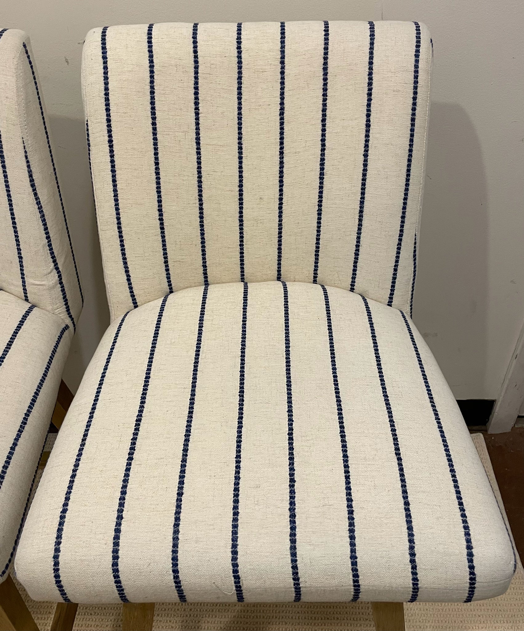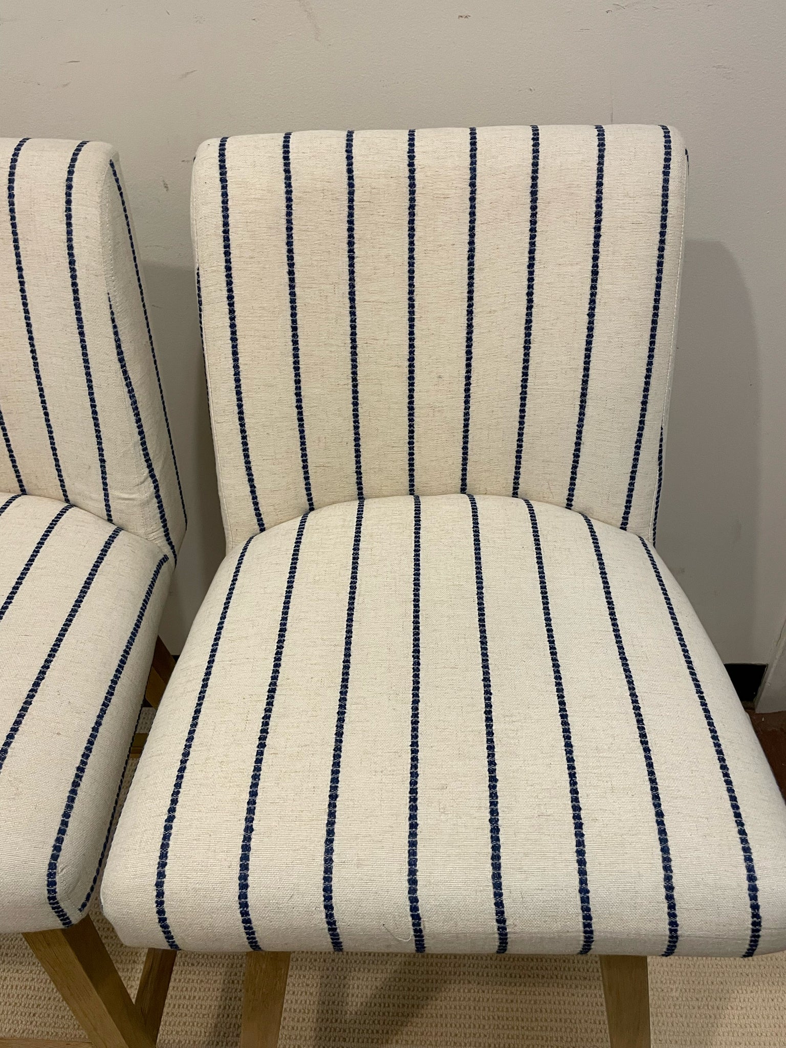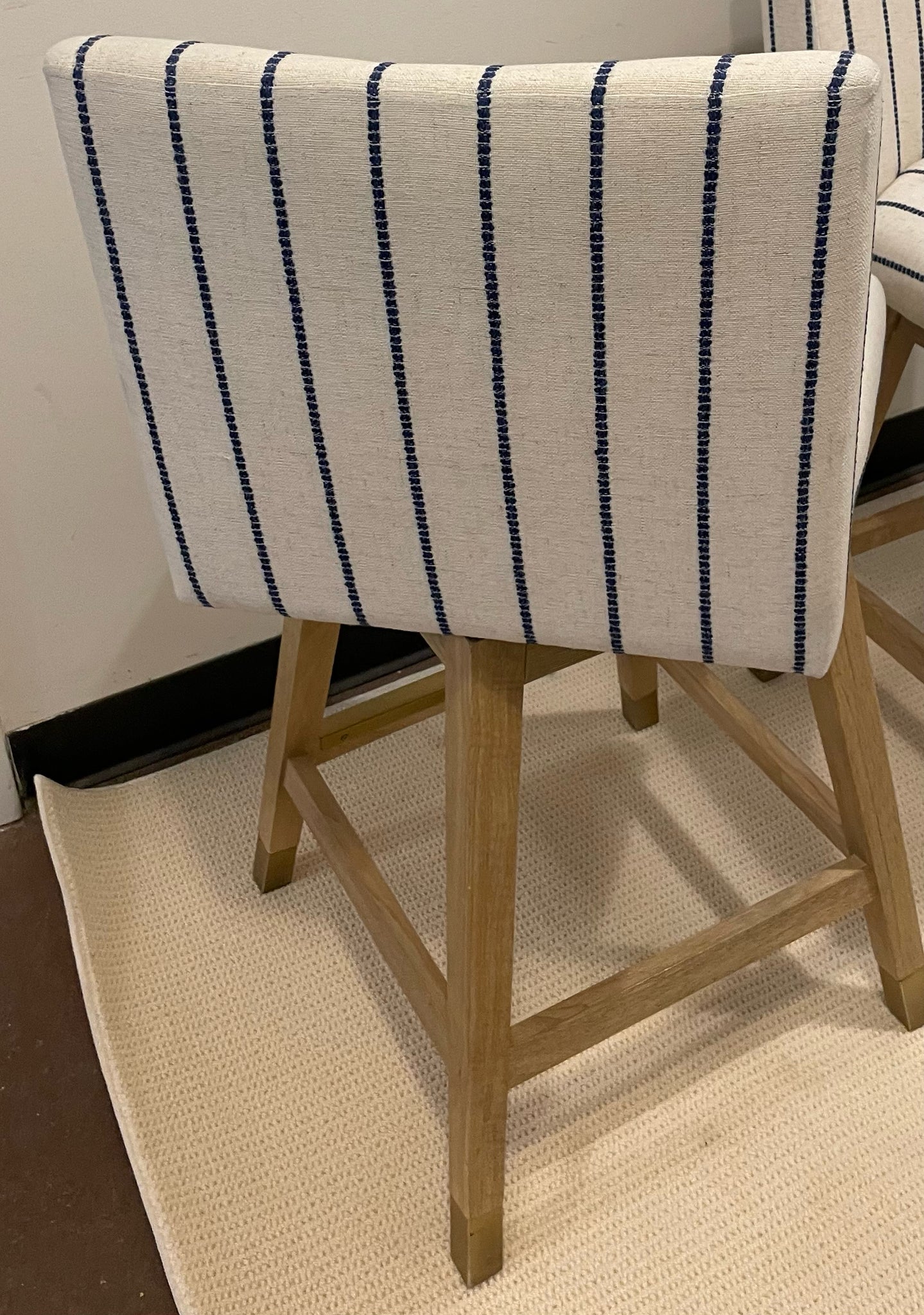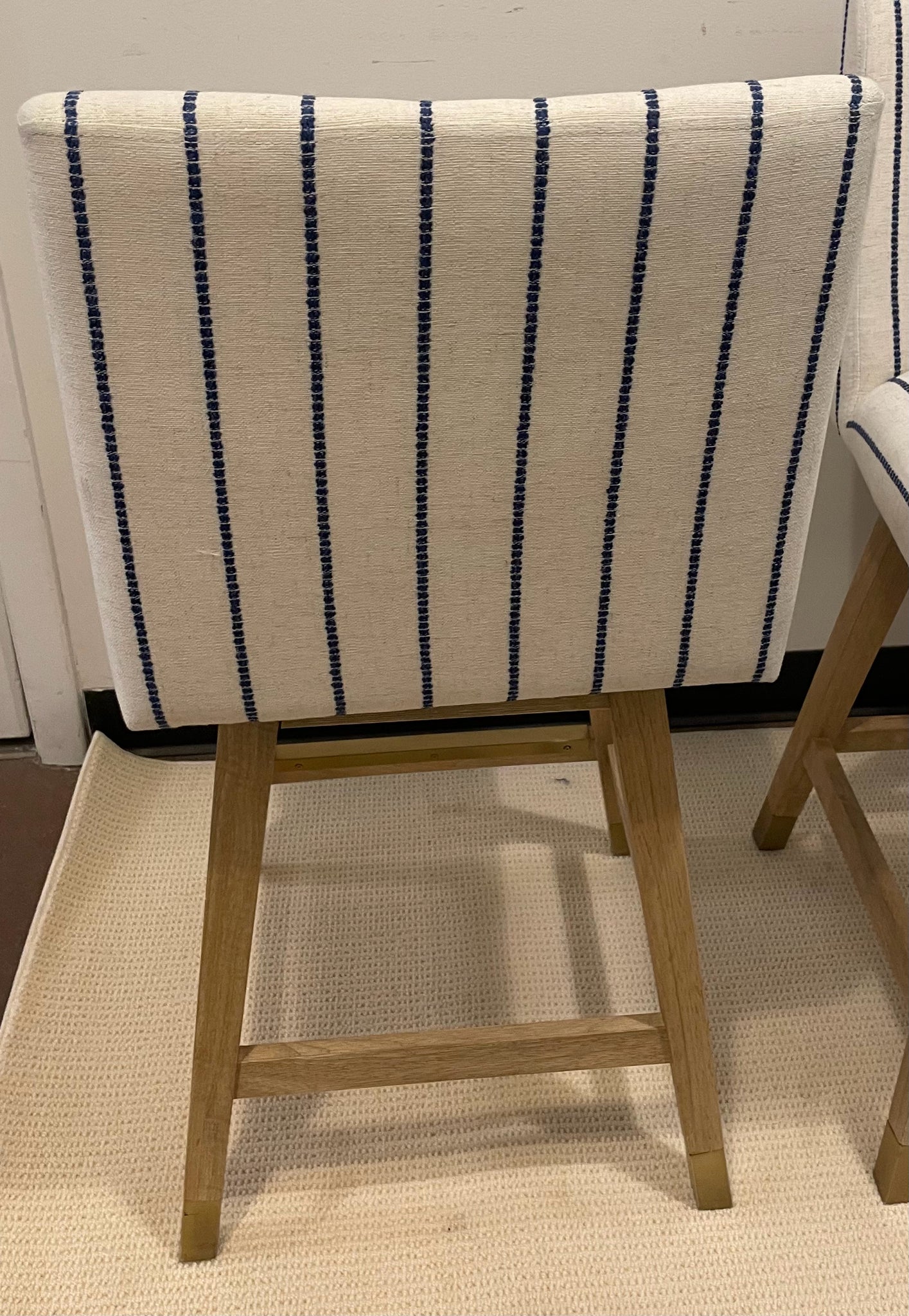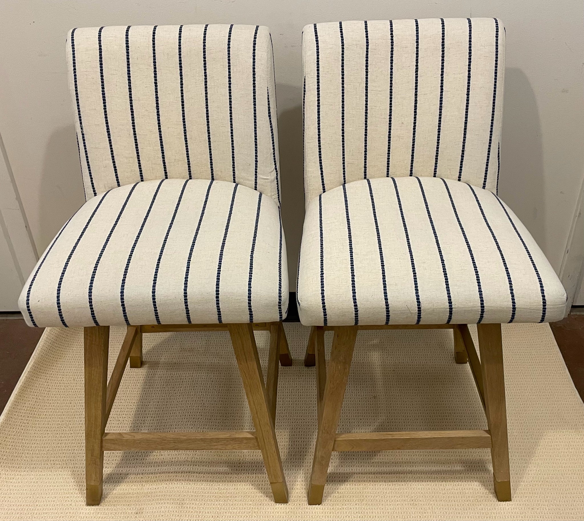 • Load image into Gallery viewer, Pair of Blue & White Striped Swivel Counter Stools from Lue Bona