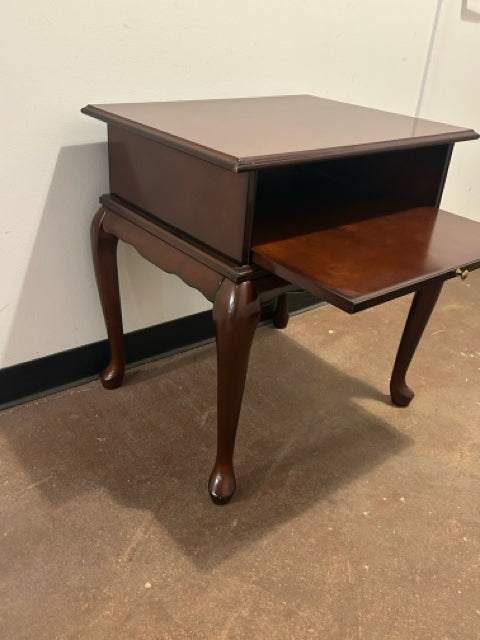 Queen Anne Style Mahogany End Table with Pull Out Tray