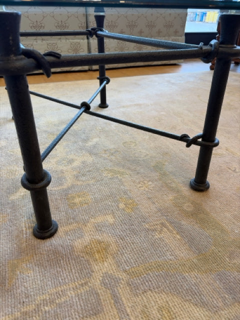 Rectangular Glass Top Coffee Table with Bronze Wrought Iron Base