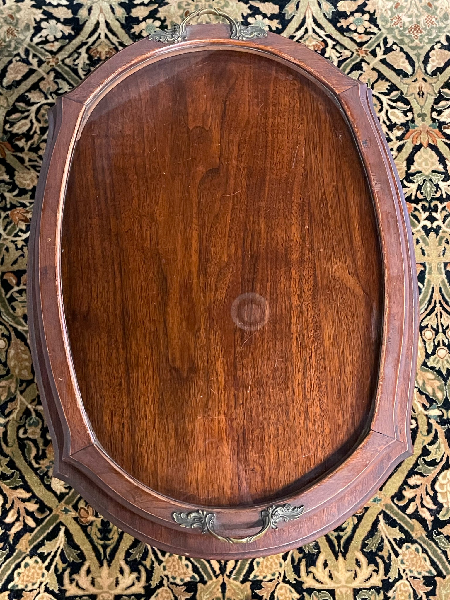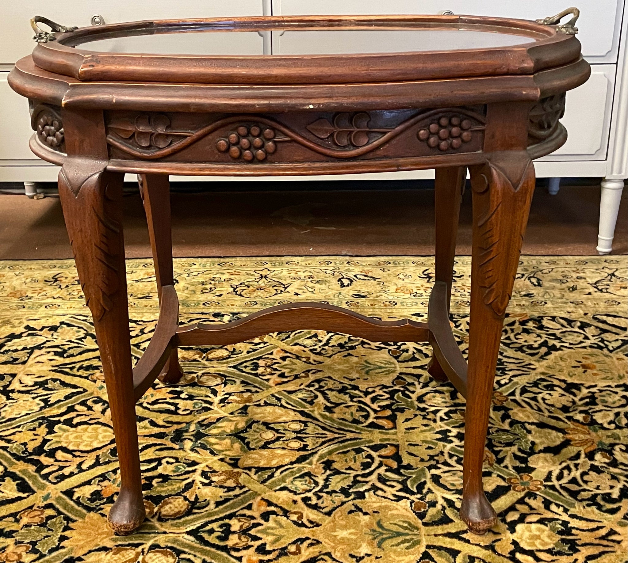 Vintage Occasional Table with Removable Glass Tray Top with Brass Handles