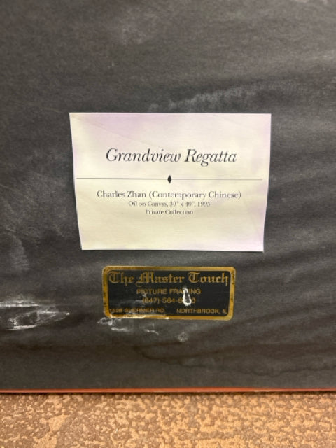 Framed Oil Painting "Grandview Regatta" by Charles Zhan, signed