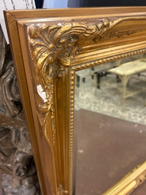 Ornate Gold Framed Beveled Mirror - AS IS: chipped