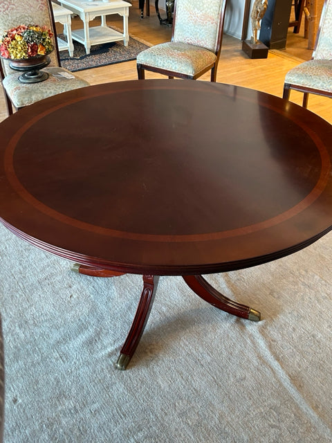 Georgian Style Mahogany Pedestal Dining Table with Satinwood Crossbanding