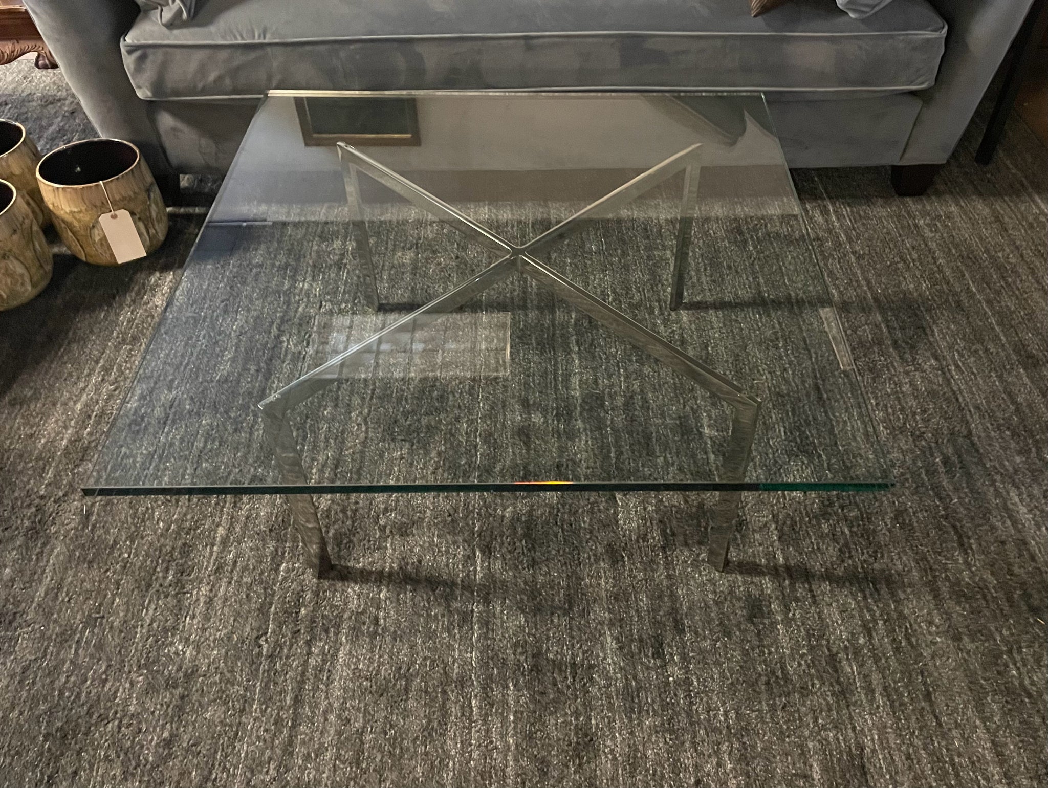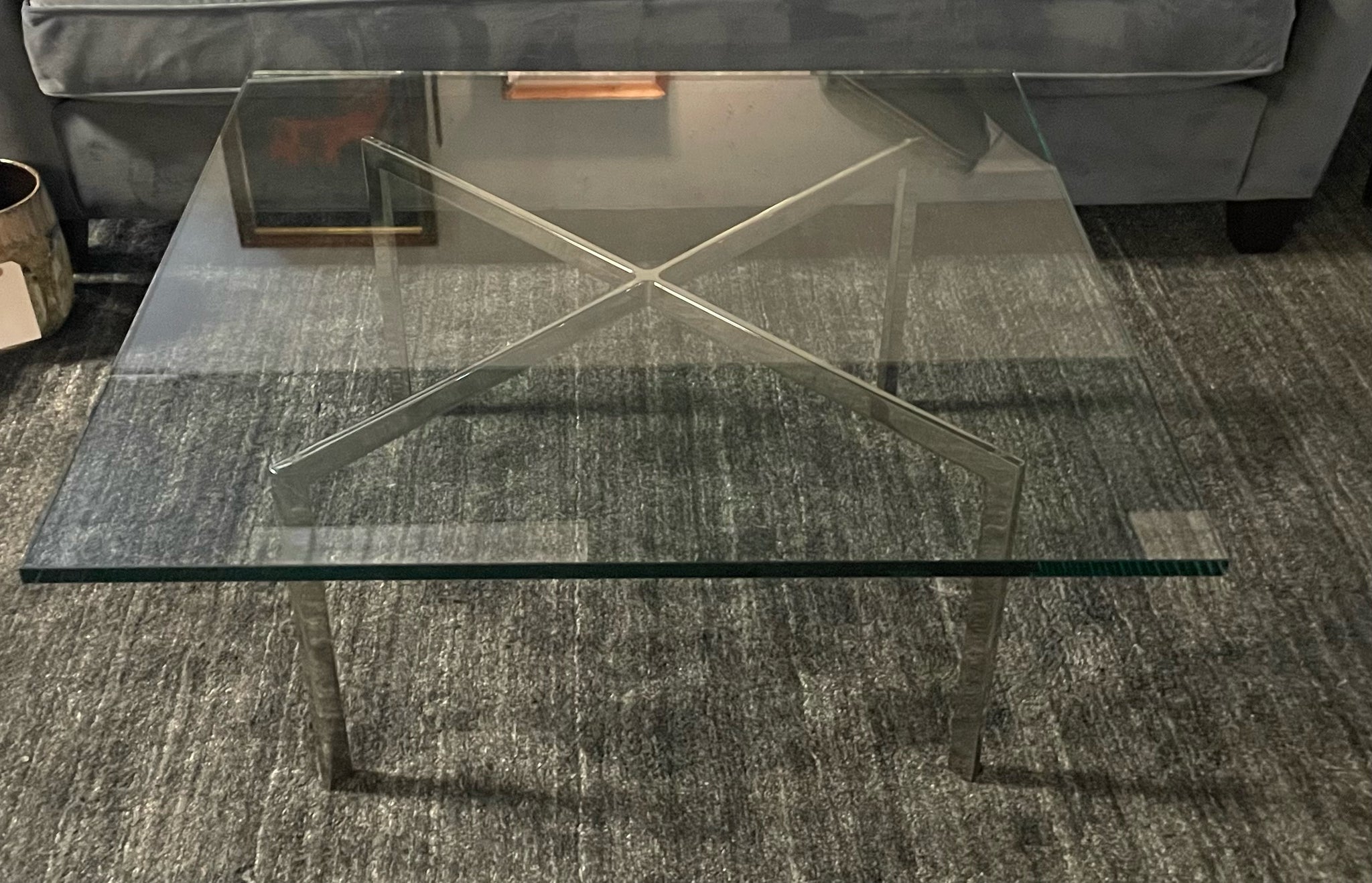 Reproduction Barcelona Glass Top Coffee Table Designed by Mies van der Rohe
