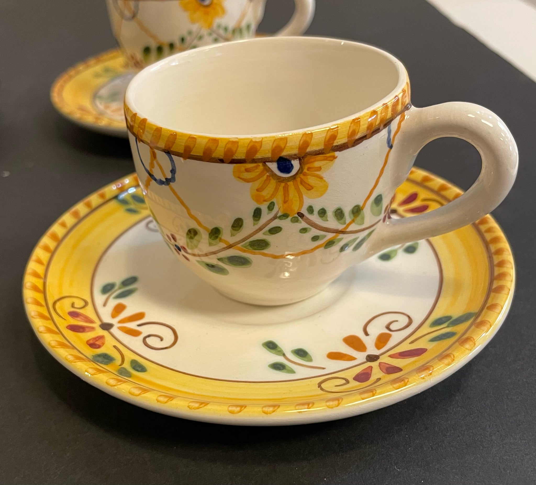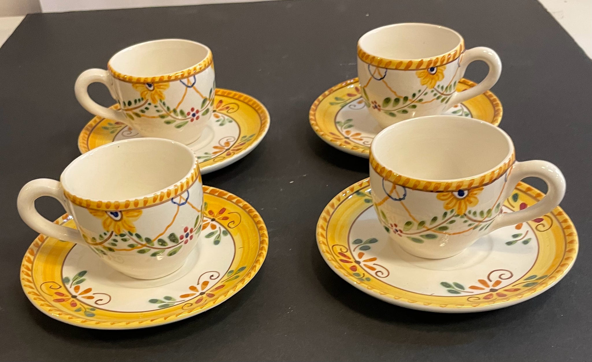 Set of Four Hand Painted Espresso Cups & Saucers from Nazari, made in Portugal