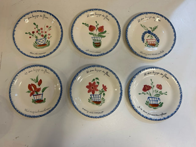 Six Vintage French "Le Doux Langage de Fleurs" Plates