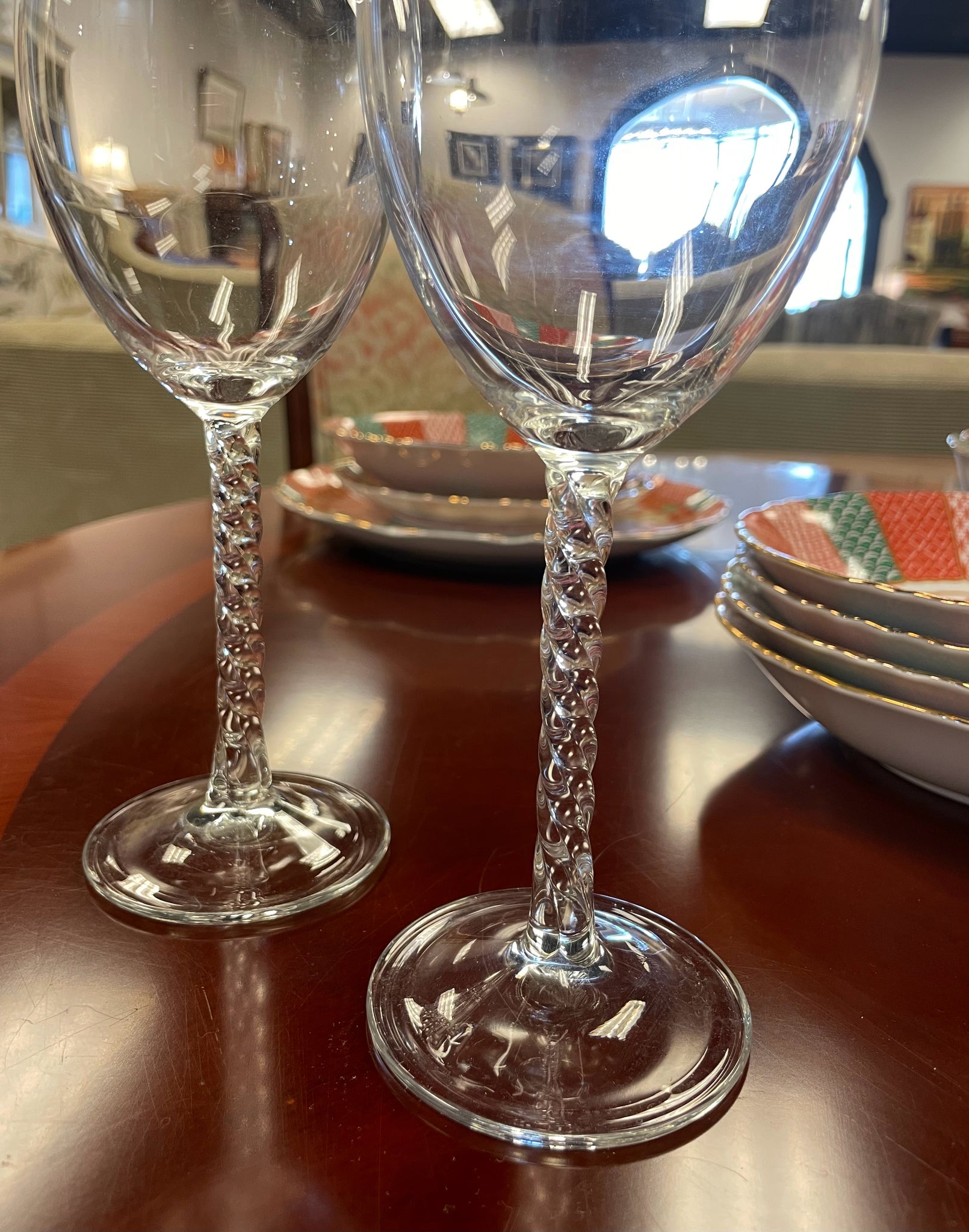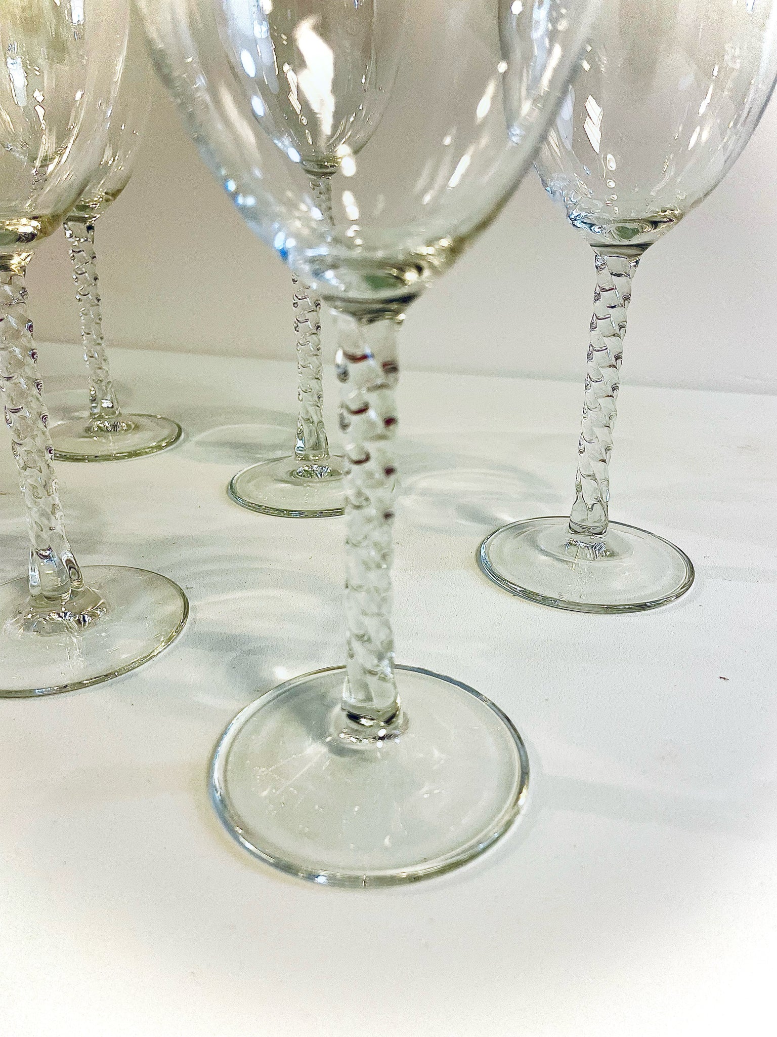 Six Vintage Twisted Stem Wine Glasses from Cristal d'Arques Durand Angelique