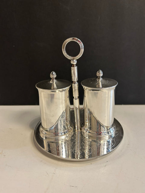 Vintage Silver Plated Salt & Pepper Grinder with Caddy from Aldo Tura, made in Italy