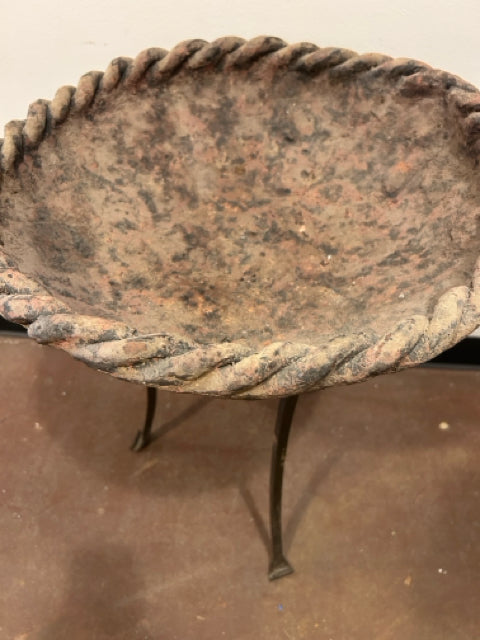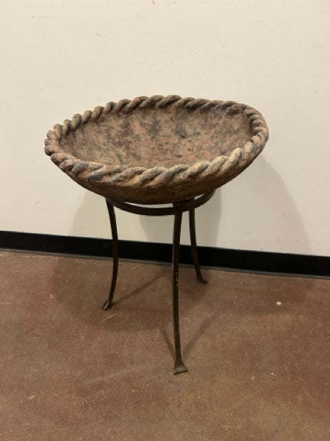 Twisted Rope Terracotta Bird Bath on Metal Base