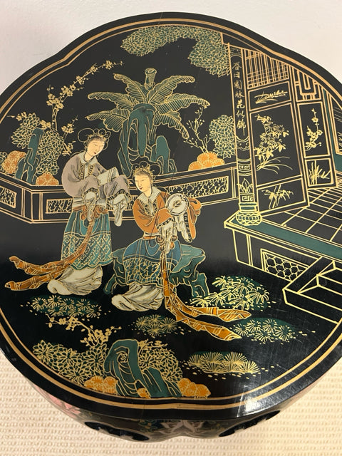 Vintage Black Lacquer Chinoiserie Glass Top Garden Stool - AS IS: Some scuffs-see photos