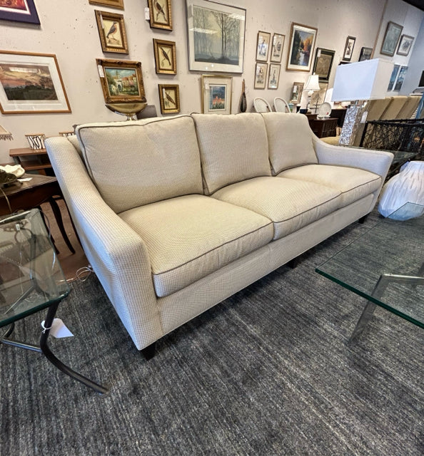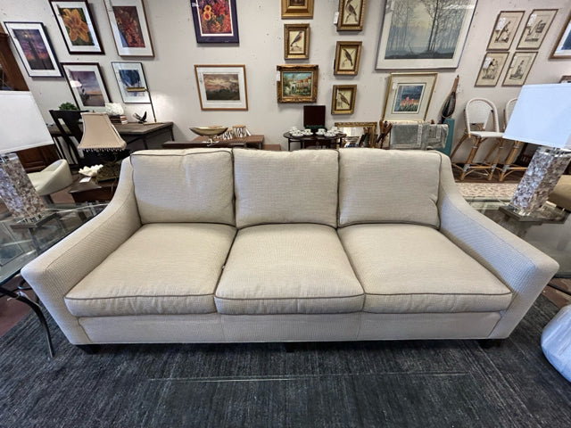 Custom Three Cushion Beige & Grey Upholstered Sofa from Dapha Upholstered Furniture, High Point, NC