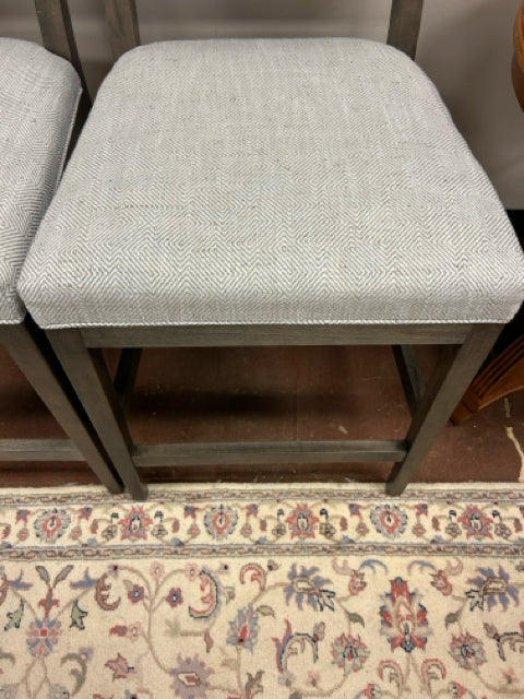 Pair of "Samson Counter Stools" in Greylan Maple with "Dove" Upholstery from Bassett Furniture