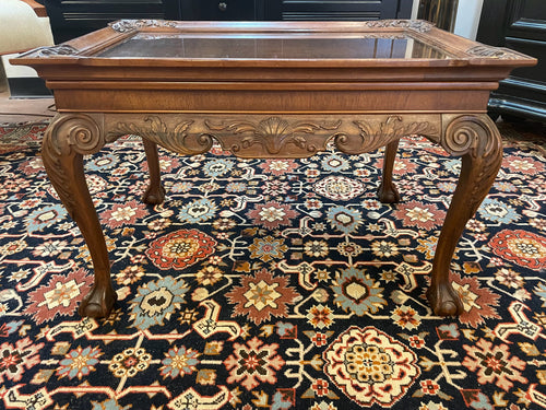 Vintage Chippendale Style Mahogany Tray Top Coffee or Side Table with Glass Insert