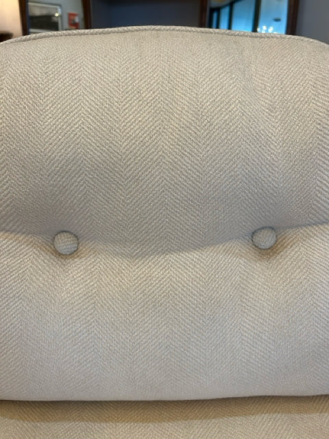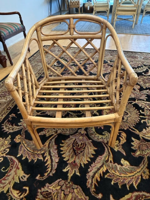 Blonde Rattan Armchair with Cream Herringbone Upholstery