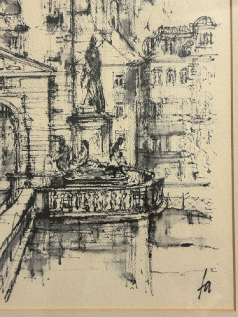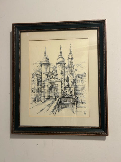 Framed Etching of the Old Bridge Gate in Heidelberg, Germany, signed
