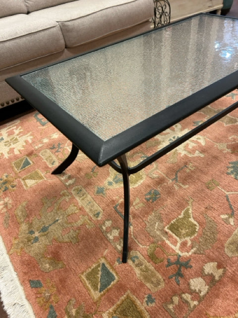 Black Metal Indoor/Outdoor Coffee Table with Frosted Glass