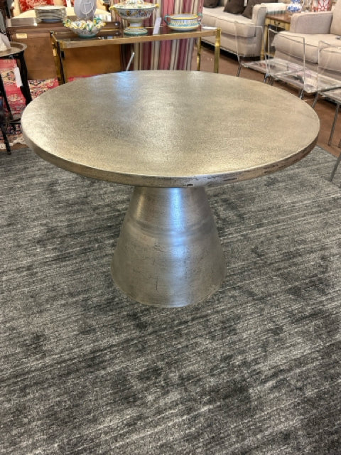 Dirk Industrial Loft Silver Metal Round Pedestal Bistro Table from Kathy Kuo Home