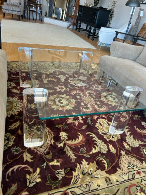 Glass Top Coffee Table with Adjustable Lucite Legs from Interlude Home