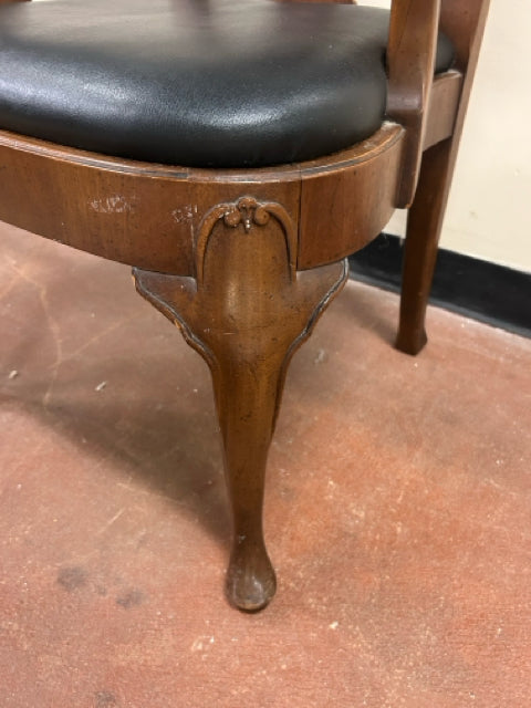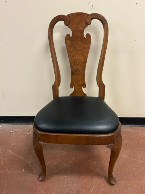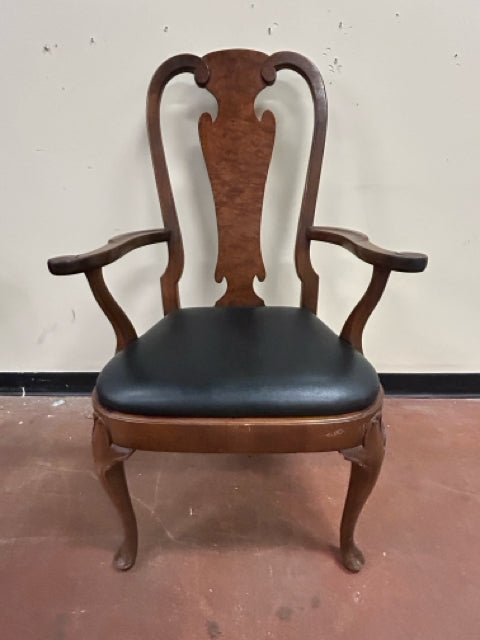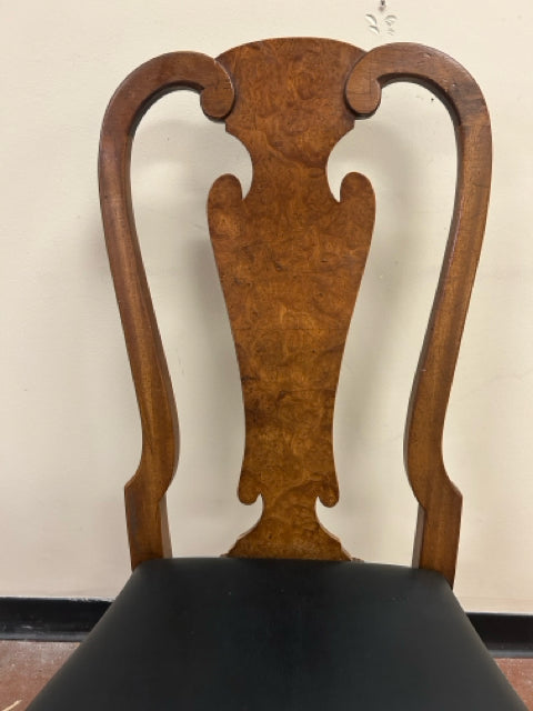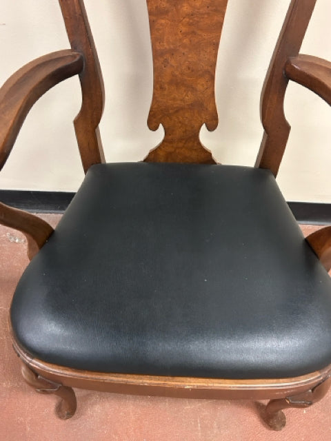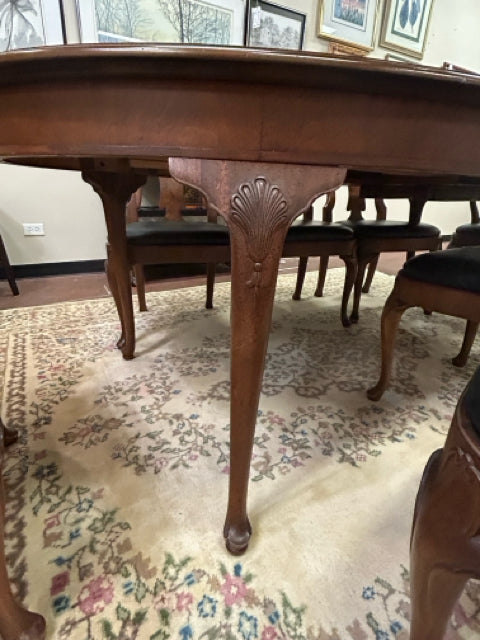 Oval Parquet Top Dining Table, Three 20" Leaves and Pads, 2 Arm & 6 Side Black Upholstered Chairs from Henredon Furniture