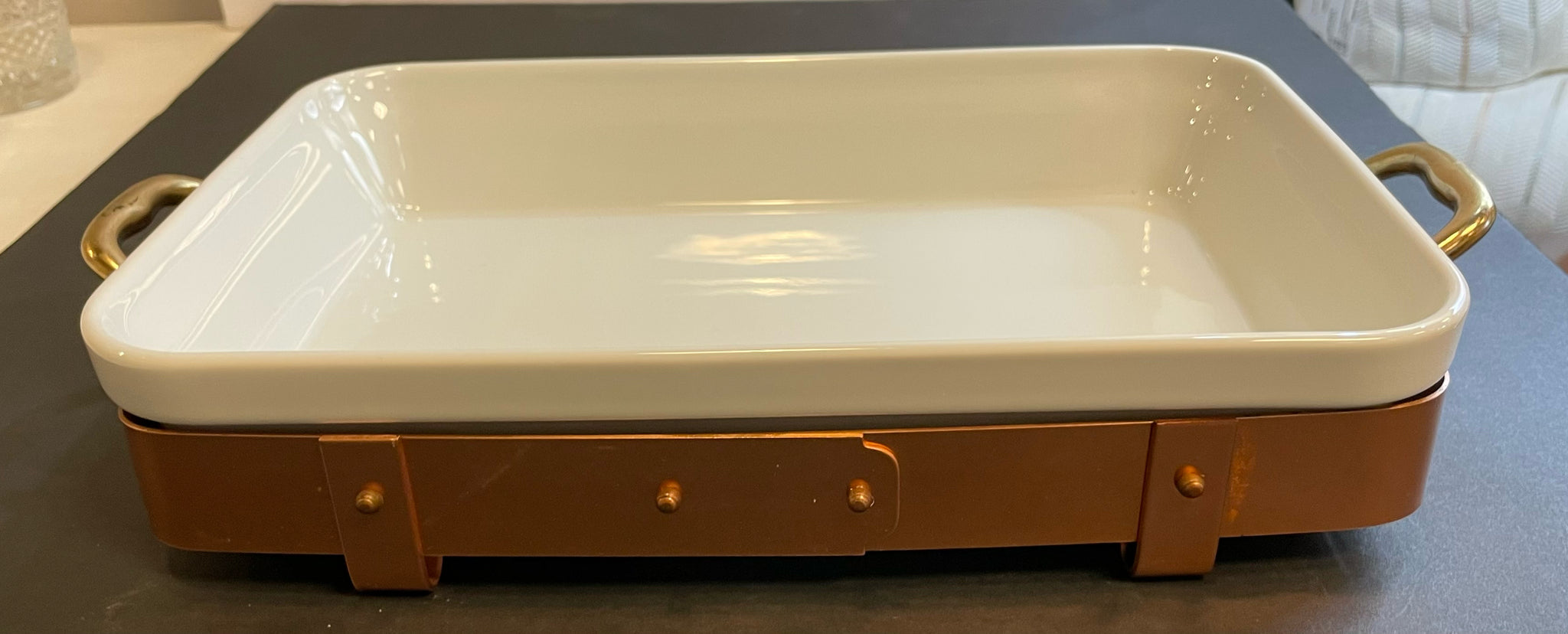 Ceramic Baking Dish in Copper Stand