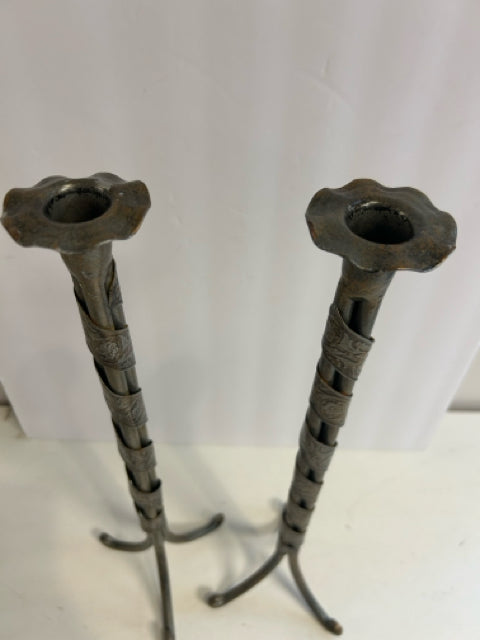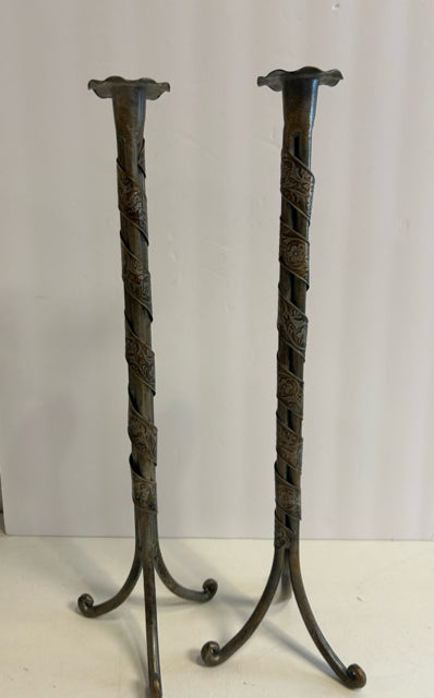Pair of Hand Forged Metal Candleholders
