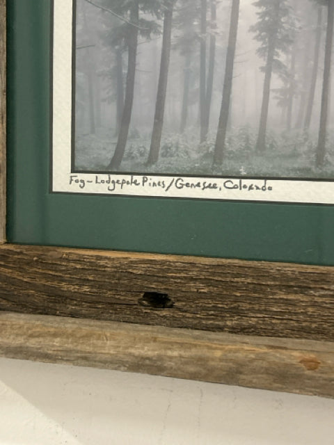 Rustic Framed Photograph "Fog-Lodgepole Pines, Genesee, Colorado" by Steve Tohari, signed