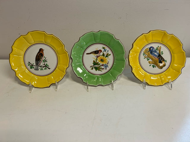 Three Majolica Bird Plates made in Italy