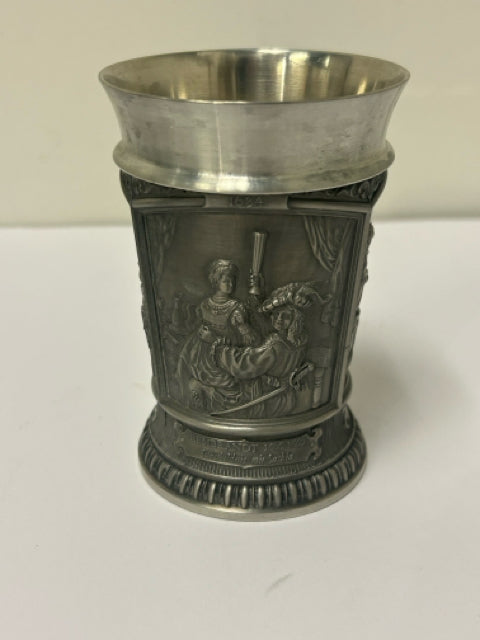 Vintage German Pewter Cup with Embossed Relief-2