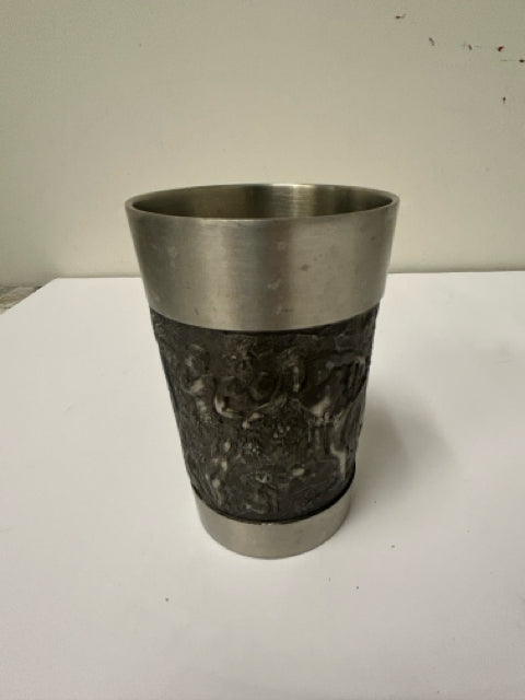 Vintage German Pewter Cup with Embossed Relief-4