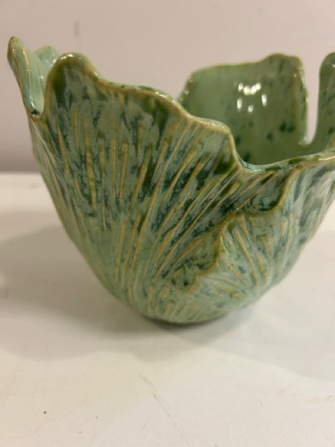 Green Ceramic Leaf Motif Vase