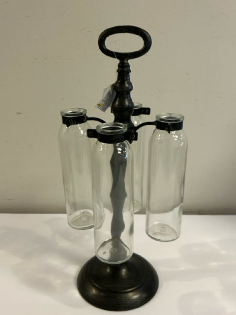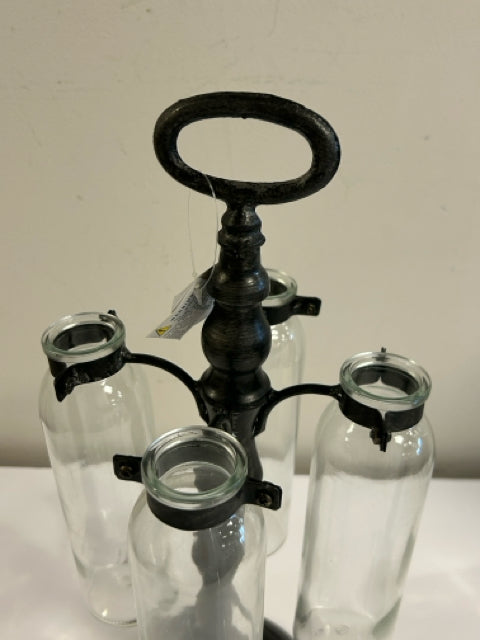 Metal Cluster Hanging Bud Vase with 4 Glass Bottle Vases