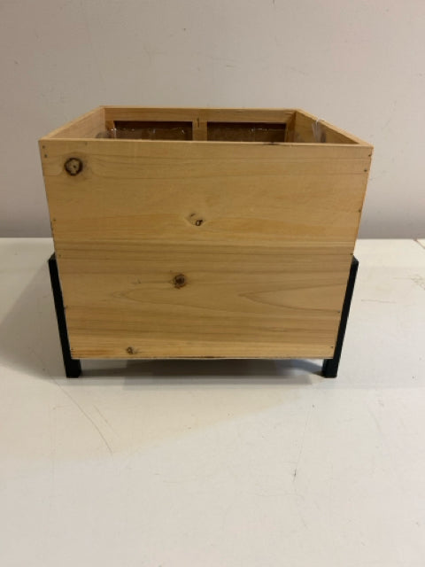 Square Wood Planter on Metal Base