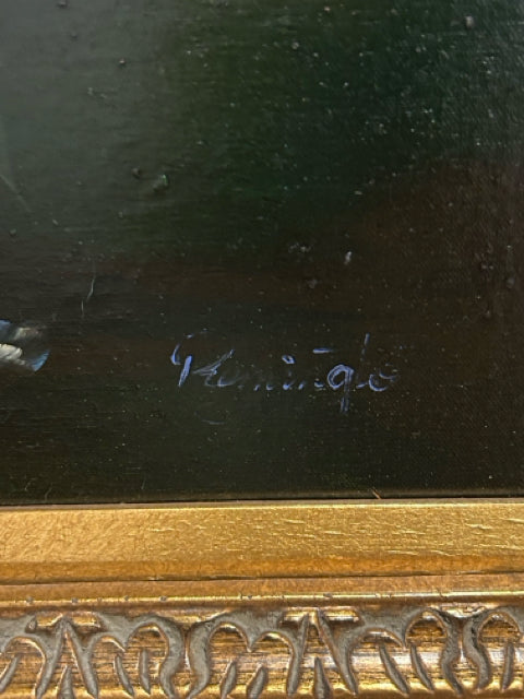 Large Framed Oil of Flowers in Vase by Romington, signed